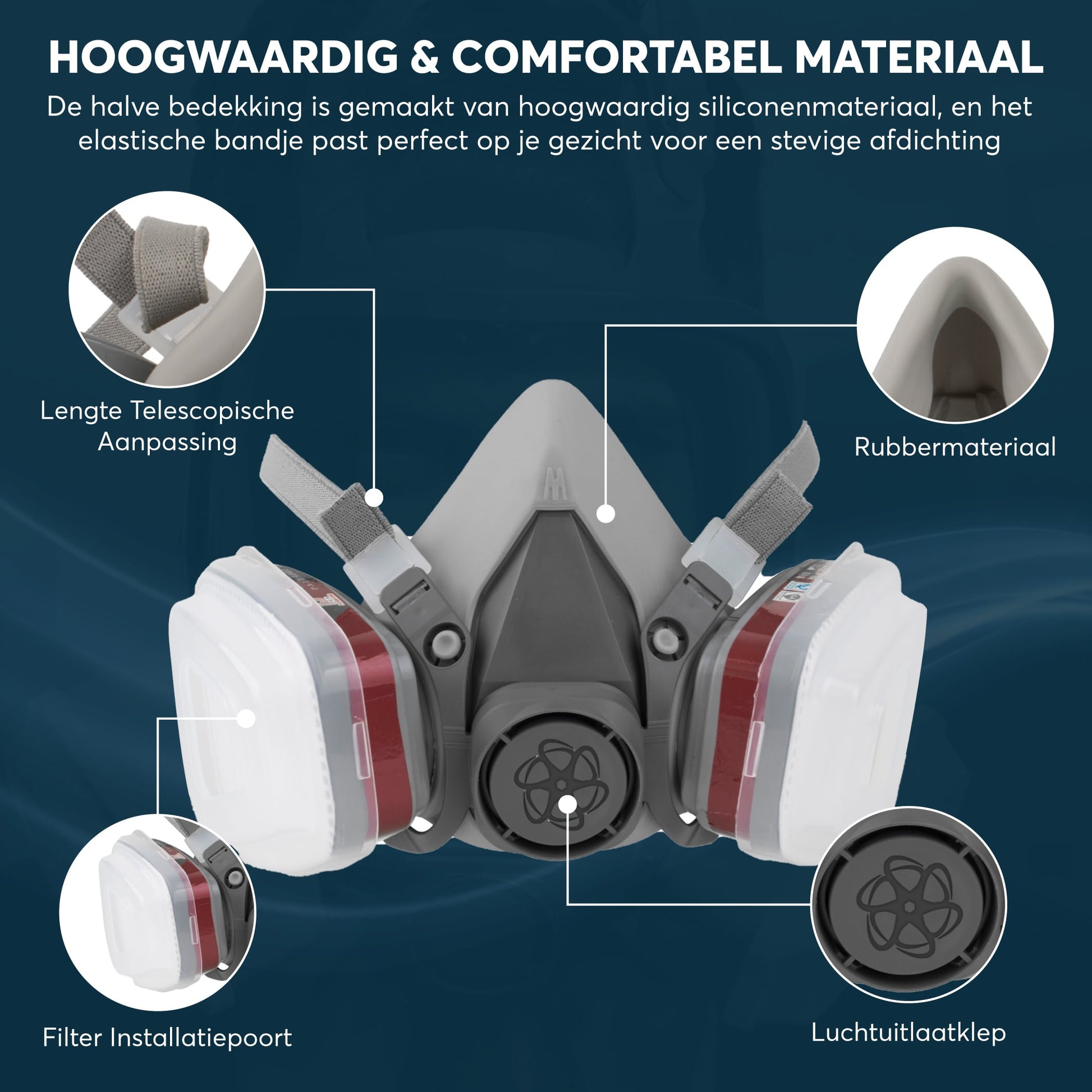Stop het halfgelaatsmasker van Procraft nu in je winkelwagen om je ademhaling voortaan te beschermen tegen schadelijke deeltjes!